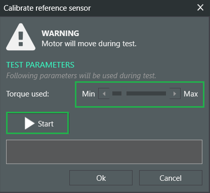 By using the Calibrate button and selecting the appropriately required torque you should be able to calibrate the motor successfully.
